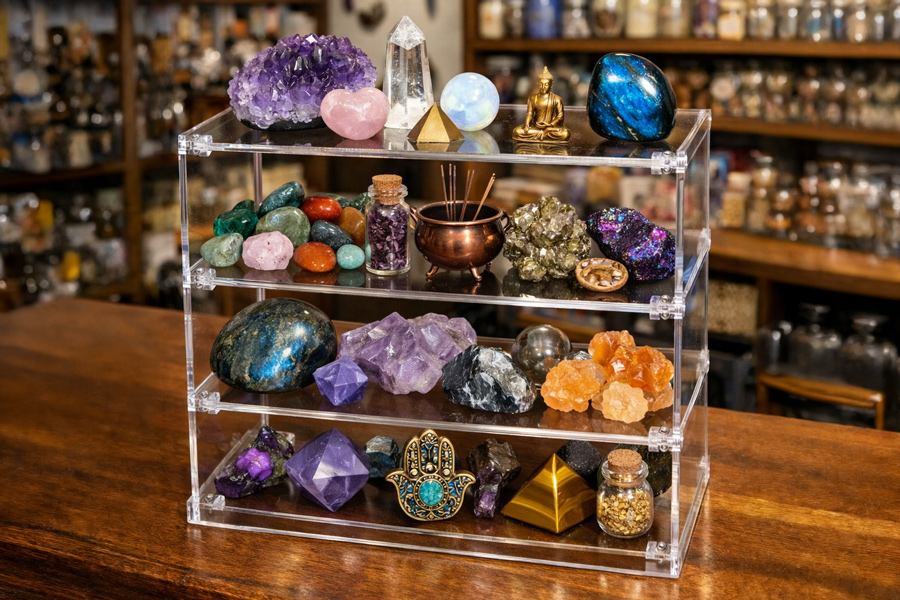 Espositori trasparenti in plexiglass per una presentazione discreta e moderna.
