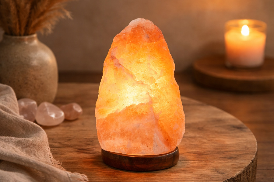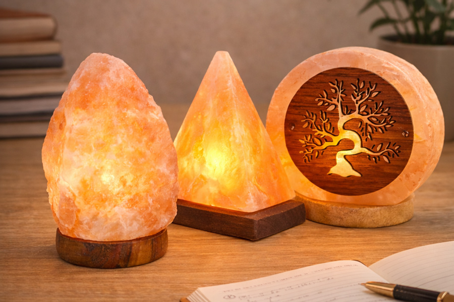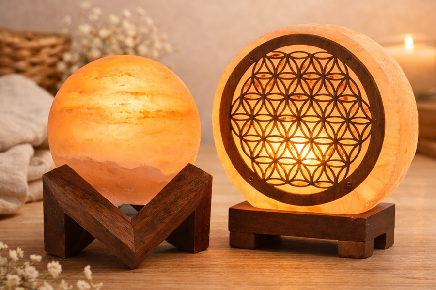 Lampade di sale himalayano lavorate e levigate in forme eleganti e originali. Suggestivi elementi d’arredo naturale.
