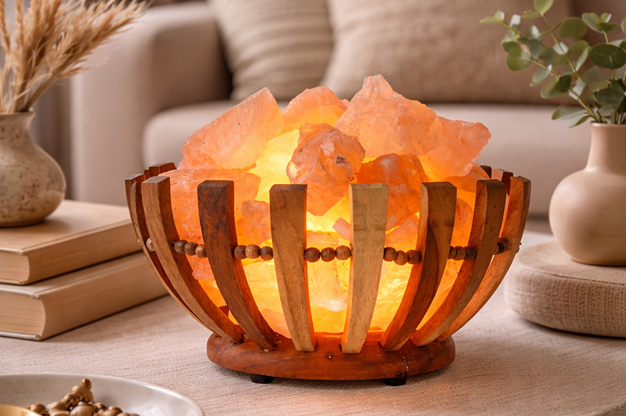 Elementi decorativi realizzati con il sale rosa dell’Himalaya, pensati per impreziosire gli ambienti con un tocco naturale e originale.