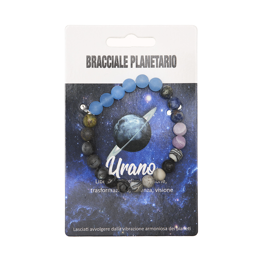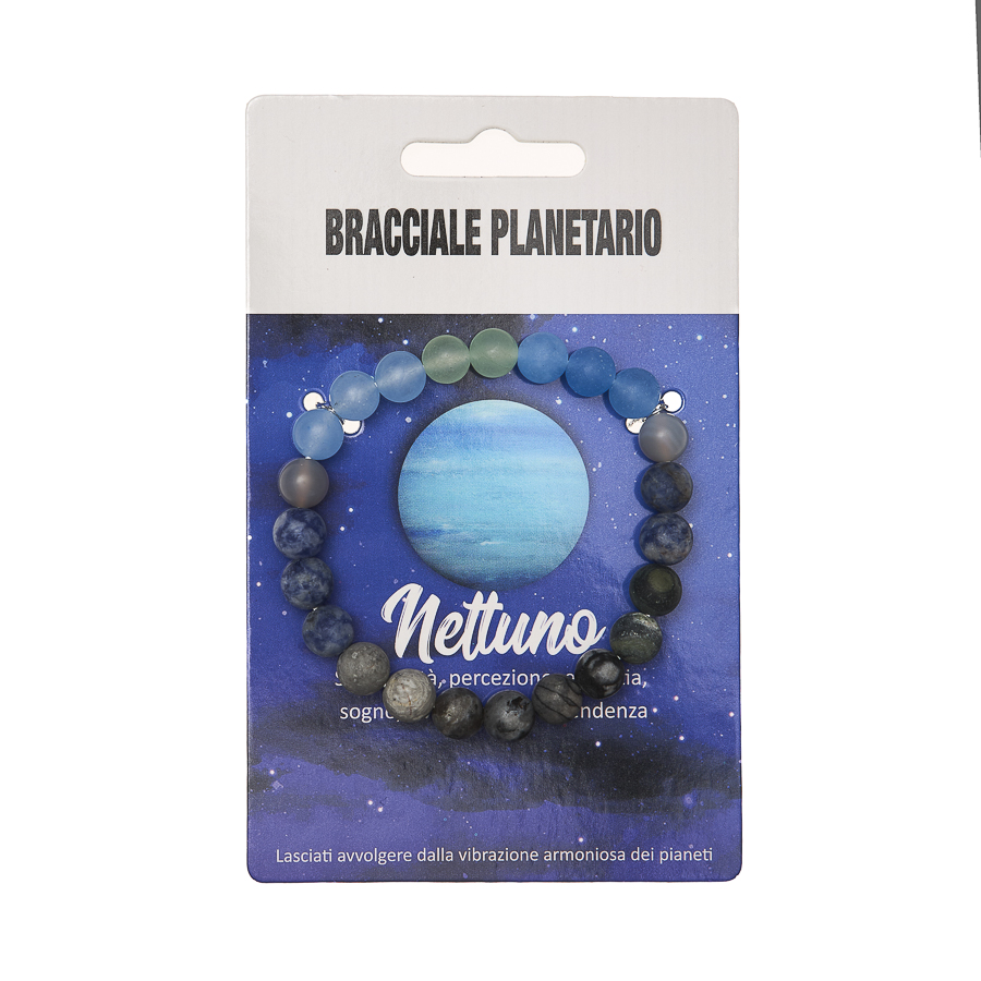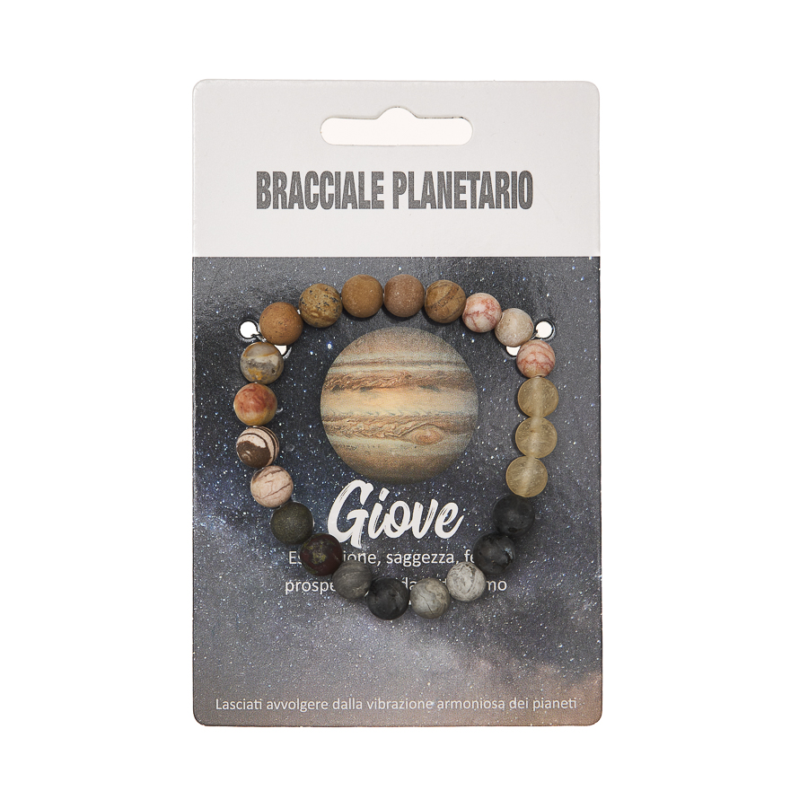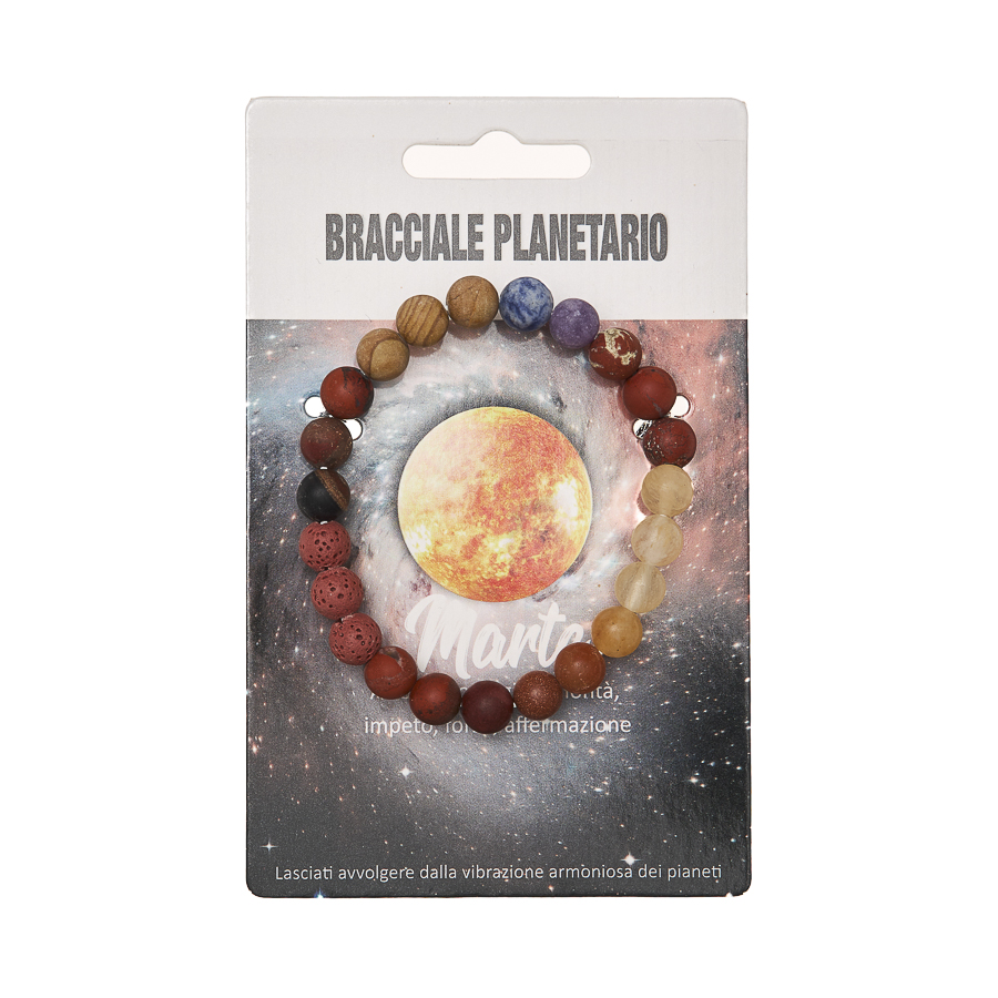 I Bracciali Planetari sono disponibili anche in display in legno da 24 pezzi assortiti, pensato per una presentazione ordinata e scenografica nel punto vendita. La collezione è dedicata agli 8 pianeti del sistema solare, ognuno rappresentato attraverso pietre selezionate in armonia con il suo significato simbolico. Ogni bracciale diventa un talismano personale, capace di richiamare qualità interiori e archetipiche legate al pianeta di riferimento.