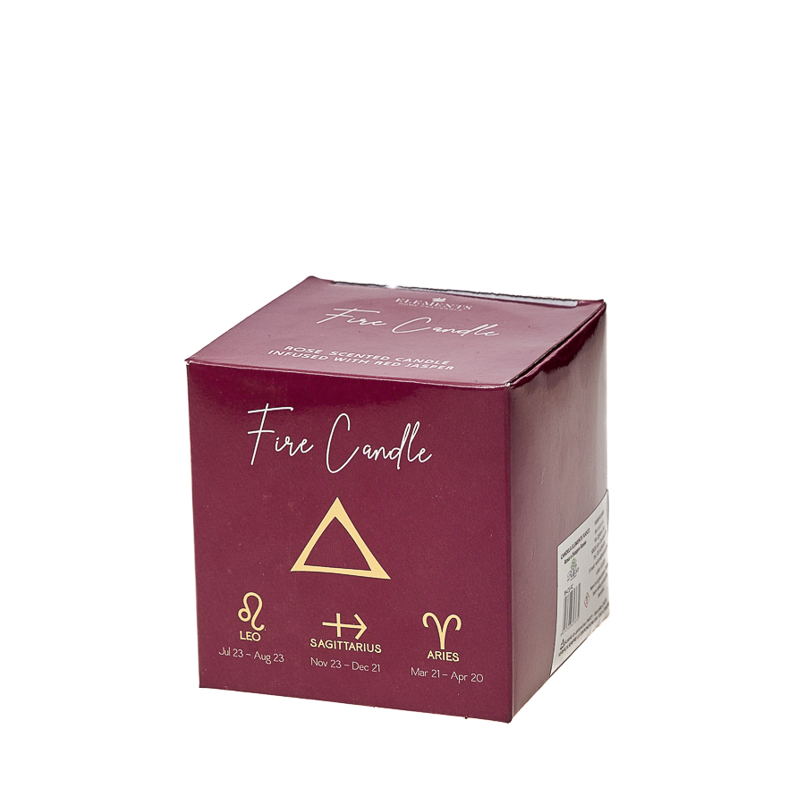 Candela Elements Fuoco Fragranza Rosa con Diaspro Rosso: Richiama energia, passione e forza vitale, con riferimento ai segni zodiacali di fuoco.