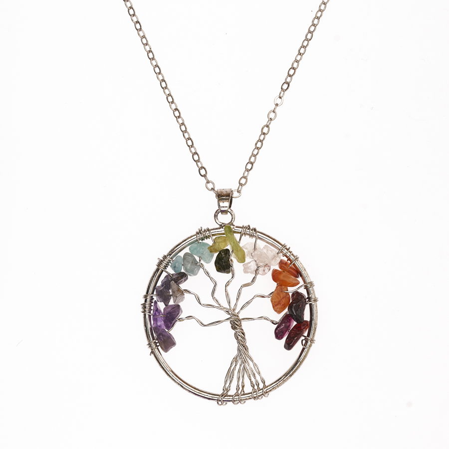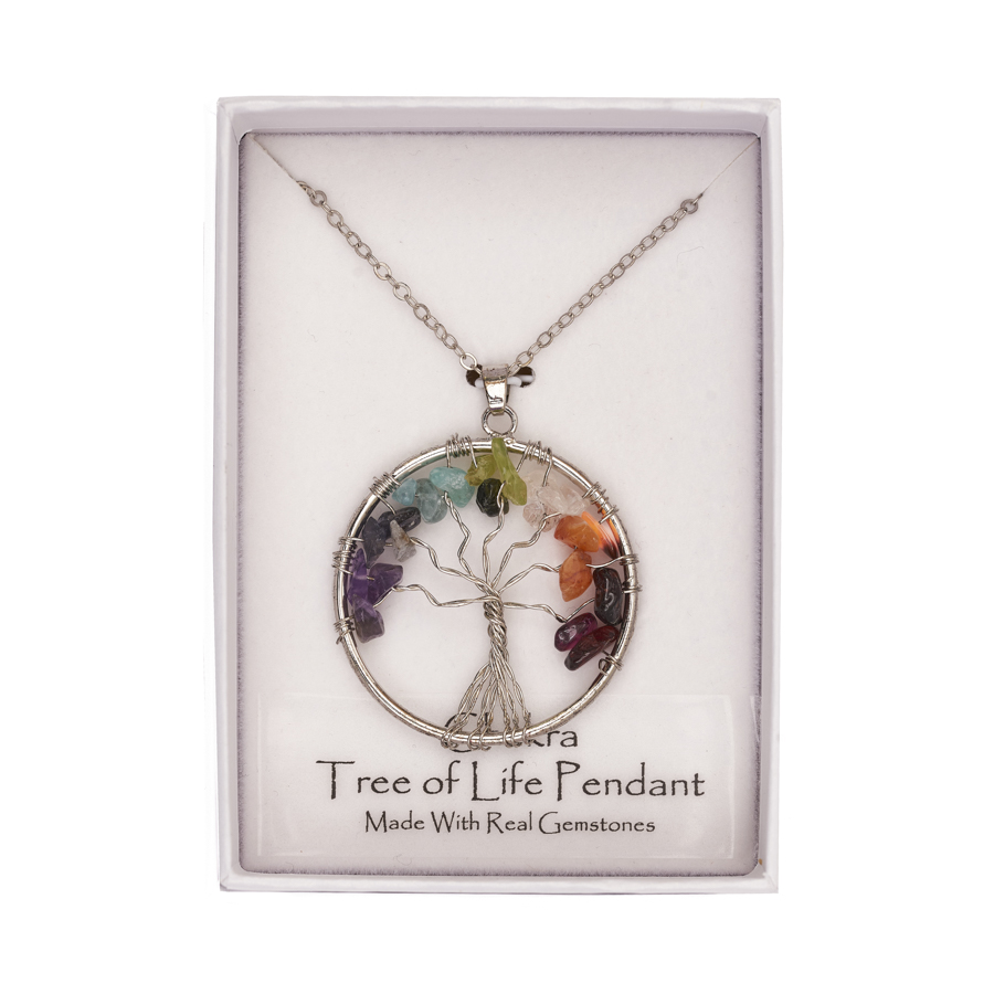 Questa collana unisce il simbolo archetipico dell’Albero della Vita—emblema di crescita, forza, rinascita e connessione tra radici e cielo—con sette pietre semipreziose che richiamano, una per ciascuna, i sette chakra del corpo energetico. Le gemme si intrecciano nella chioma dell’albero, mentre le radici affondano simbolicamente nella terra: un design che parla di equilibrio, evoluzione e armonia interiore. La confezione regalo dedicata ne fa un prodotto perfetto sia per la vendita singola che come proposta da regalo. Per il punto vendita: Prodotto ad alta attrattività: simbolo popolare + pietre naturali + confezione regalo Ideale per corner “gioielli spirituali” o “chakra” Abbinabile a teli simbolici, bracciali chakra, pendenti a tema