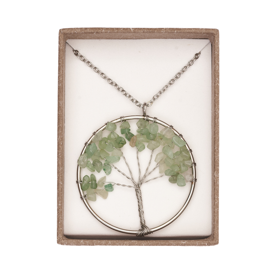 Collane Albero della Vita – Simbolo di Forza e Crescita Queste eleganti collane uniscono la bellezza della pietra naturale al simbolismo senza tempo dell’Albero della Vita, intrecciato a mano con fili metallici artistici che formano rami, radici e una chioma ricca e armoniosa. Ogni ciondolo è unico: la pietra semipreziosa incastonata nella chioma dell’albero ne amplifica l’energia, rendendo ogni collana un talismano personale dedicato alla crescita, alla stabilità e alla connessione tra Cielo e Terra. ✦ Caratteristiche Albero realizzato con fili metallici lavorati a mano Pietre naturali: ogni colore evoca una diversa energia (amore, serenità, protezione, vitalità...) Cordino o catenina inclusi, pronti da indossare Confezione regalo e cartellino con spiegazione della pietra inclusi. L’Albero della Vita rappresenta la forza interiore, l’equilibrio e la connessione con l’energia universale. Le sue radici affondano nella Terra, mentre i rami si slanciano verso il Cielo: un invito a crescere restando connessi alle proprie origini. Per il punto vendita: Articolo dal forte impatto simbolico e visivo Ottimo per corner “gioielli spirituali”, “pietre e cristalli”, “idee regalo”