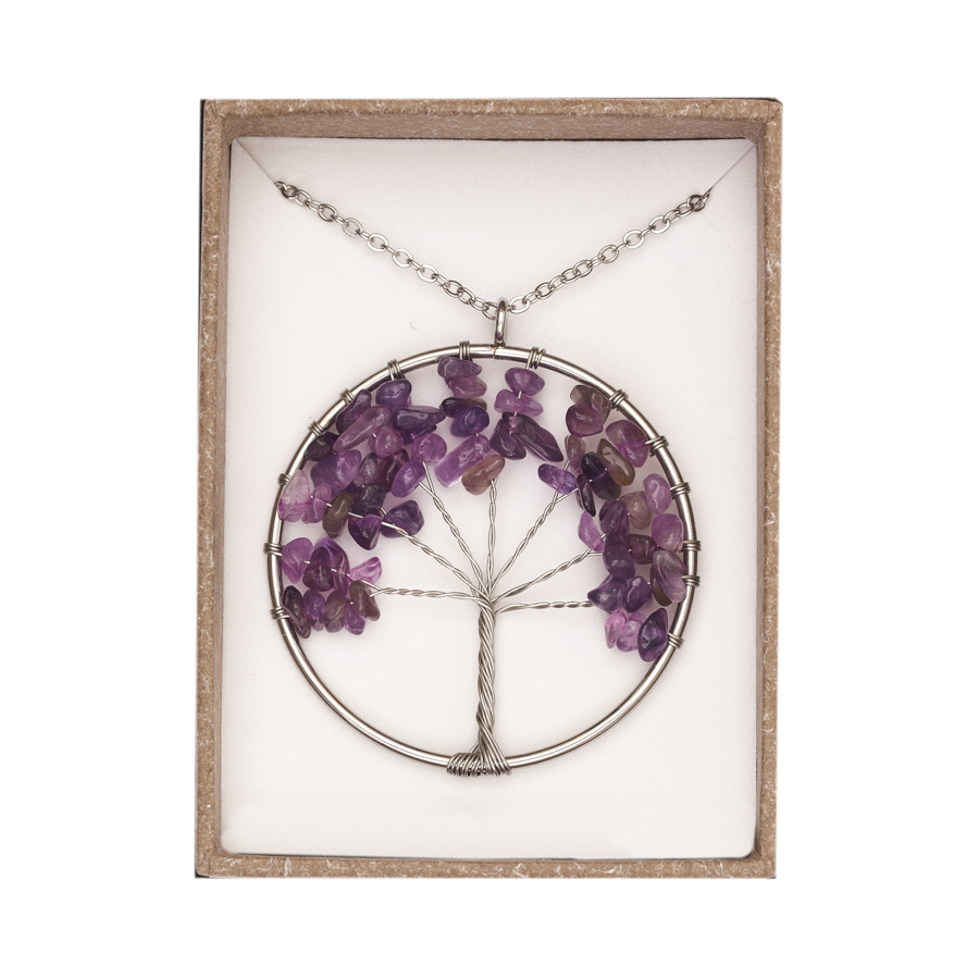 Collane Albero della Vita – Simbolo di Forza e Crescita Queste eleganti collane uniscono la bellezza della pietra naturale al simbolismo senza tempo dell’Albero della Vita, intrecciato a mano con fili metallici artistici che formano rami, radici e una chioma ricca e armoniosa. Ogni ciondolo è unico: la pietra semipreziosa incastonata nella chioma dell’albero ne amplifica l’energia, rendendo ogni collana un talismano personale dedicato alla crescita, alla stabilità e alla connessione tra Cielo e Terra. ✦ Caratteristiche Albero realizzato con fili metallici lavorati a mano Pietre naturali: ogni colore evoca una diversa energia (amore, serenità, protezione, vitalità...) Cordino o catenina inclusi, pronti da indossare Confezione regalo e cartellino con spiegazione della pietra inclusi. L’Albero della Vita rappresenta la forza interiore, l’equilibrio e la connessione con l’energia universale. Le sue radici affondano nella Terra, mentre i rami si slanciano verso il Cielo: un invito a crescere restando connessi alle proprie origini. Per il punto vendita: Articolo dal forte impatto simbolico e visivo Ottimo per corner “gioielli spirituali”, “pietre e cristalli”, “idee regalo”