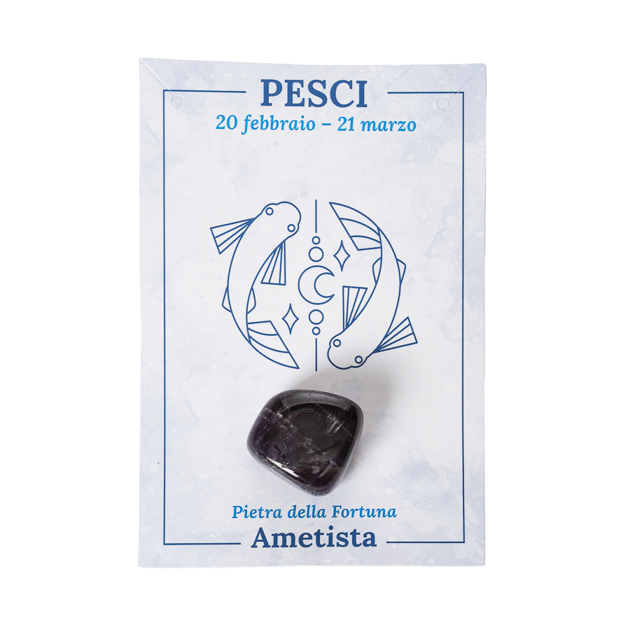 La storica linea Pietre della Fortuna raccoglie una selezione di cristalli naturali in formato tascabile, pensati per accompagnarti nella vita quotidiana con la loro vibrazione simbolica ed energetica. Ogni pietra è scelta per la sua associazione con qualità come protezione, abbondanza, amore, armonia, intuizione o coraggio, ed è confezionata singolarmente con una grafica dedicata e descrizioni del segno zodiacale e della pietra ad esso associata.