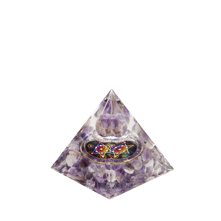La serie Nubia riunisce piramidi in orgonite concepite come dispositivi di armonizzazione energetica, ispirati agli studi di Wilhelm Reich sull’orgone, l’energia vitale universale presente in tutti gli esseri viventi. Realizzate con una combinazione di resina, metalli e cristalli, le piramidi orgoniche agiscono come catalizzatori per l’equilibrio energetico, contribuendo a migliorare la qualità dell’ambiente e a creare spazi più armonici. Tutte le piramidi Nubia presentano una sfera in quarzo sospesa, elemento centrale che richiama la completezza e la continuità del flusso energetico, e un simbolo sacro inciso o inserito all’interno, scelto per amplificare l’intenzione vibrazionale di ciascuna piramide.