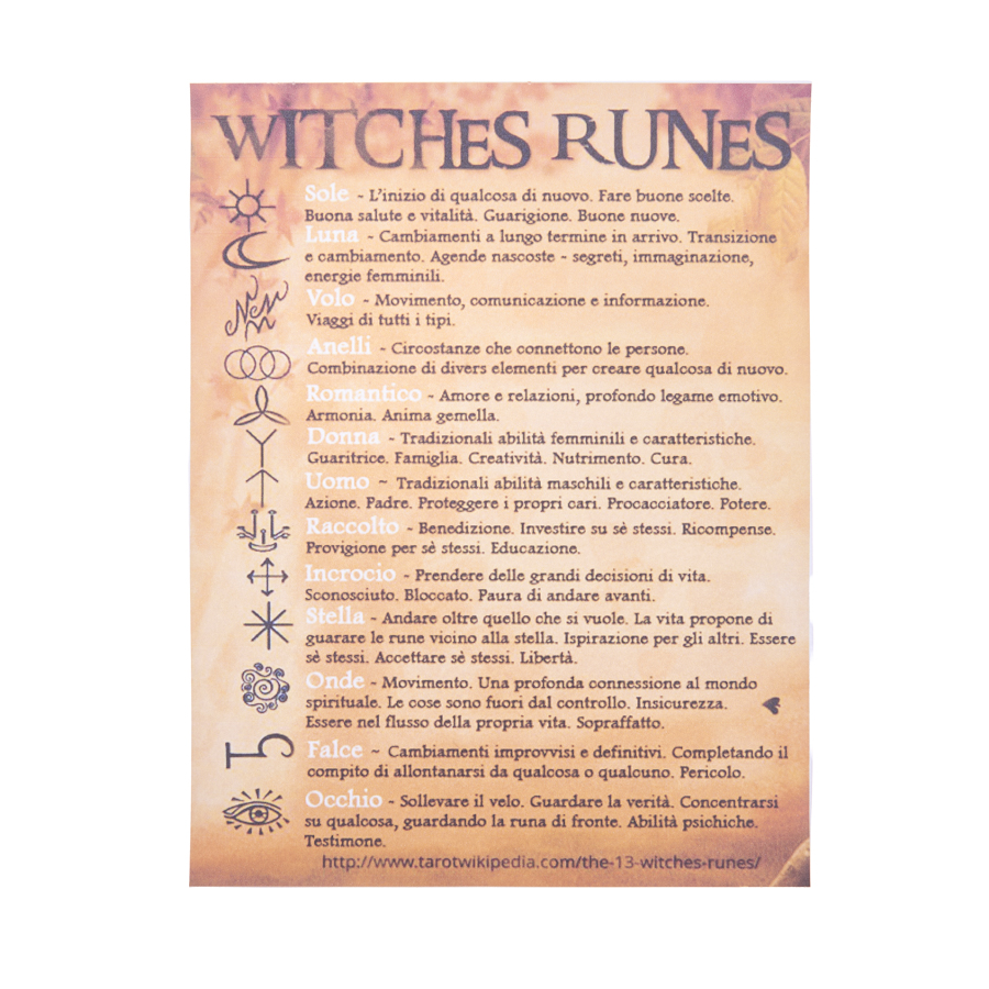Le Rune delle Streghe (Witch’s Runes) sono un sistema divinatorio moderno ma fortemente ispirato alla simbologia antica e ai cicli della natura. Composte da 13 simboli semplici ma potenti, offrono risposte intuitive, immediate e profonde. Questo set è realizzato in ossidiana nera, pietra di protezione e introspezione, perfetta per pratiche esoteriche, letture notturne e rituali della luna. Il sacchetto in velluto nero completa il set, rendendolo ideale per l’uso quotidiano, in viaggio o come parte di un altare personale. Ideale per: rituali della luna, sabbat, lavori con la Dea meditazioni connesse all’archetipo della strega praticanti solitari e letture simboliche veloci Per il punto vendita: Aspetto elegante, scuro e misterioso Ottimo per corner “stregoneria moderna”, “divinazione intuitiva”, “spiritualità femminile” Abbinabile a candele rituali, pendoli, carte oracolari, grimori Radicate nella terra, guidate dalla luna.