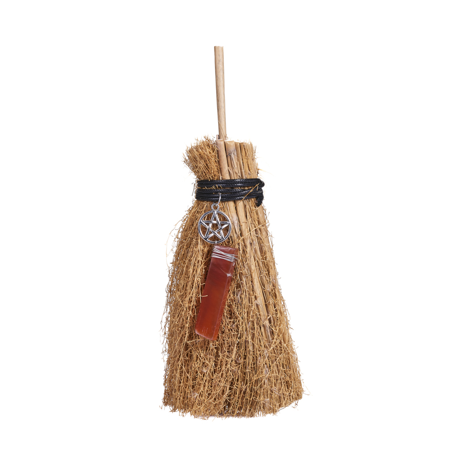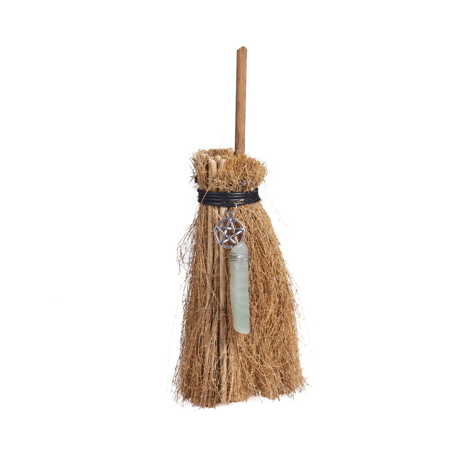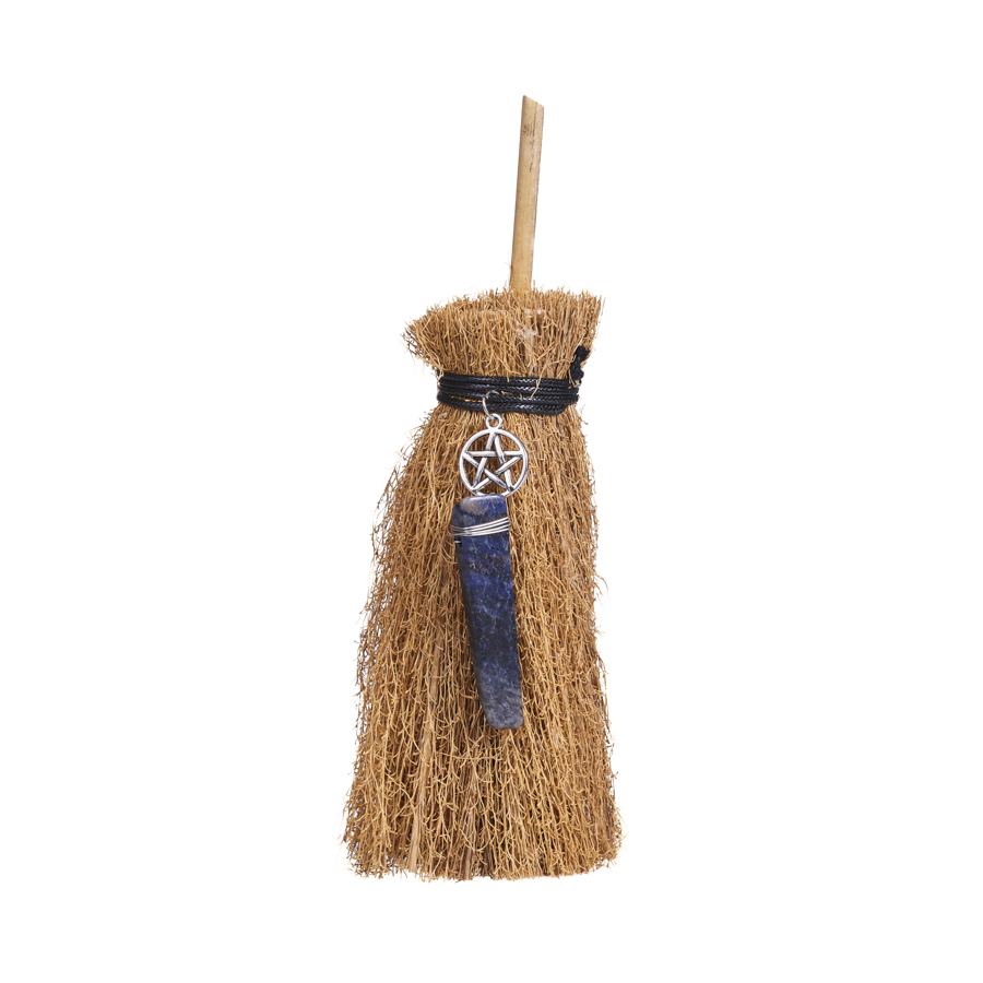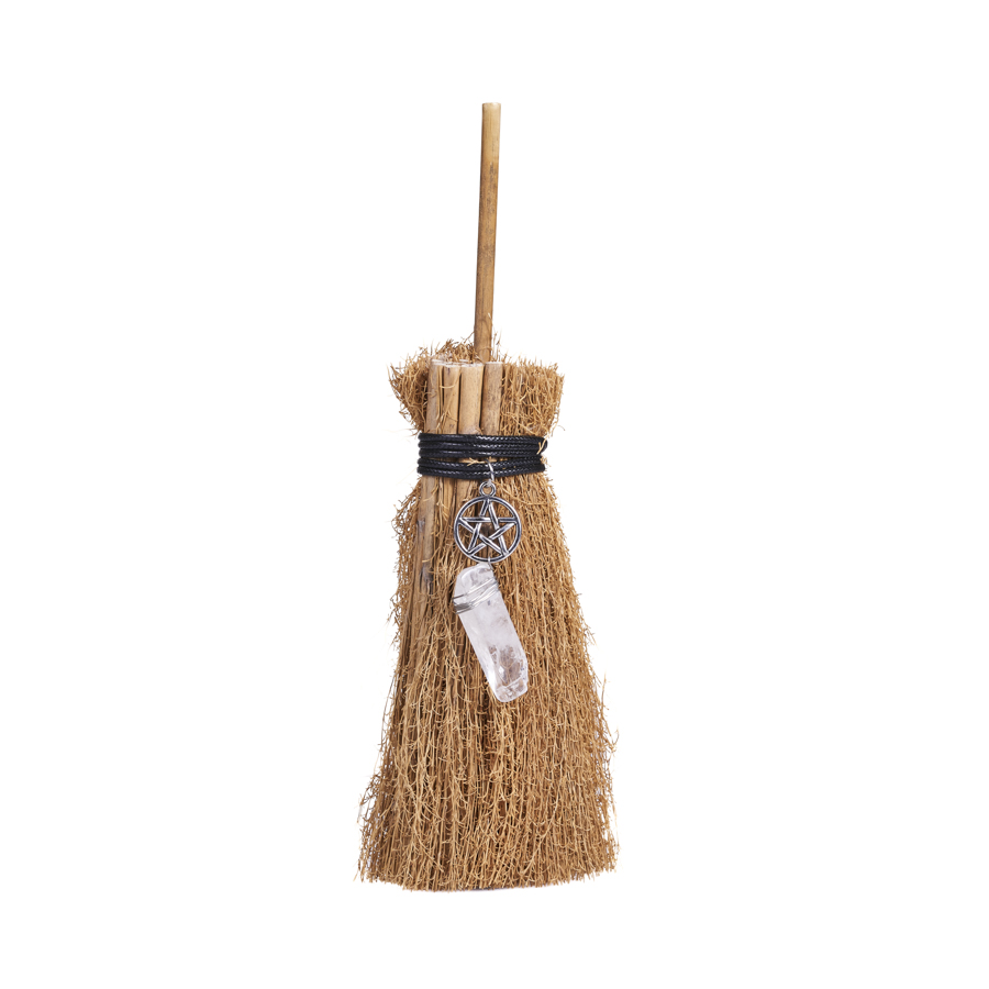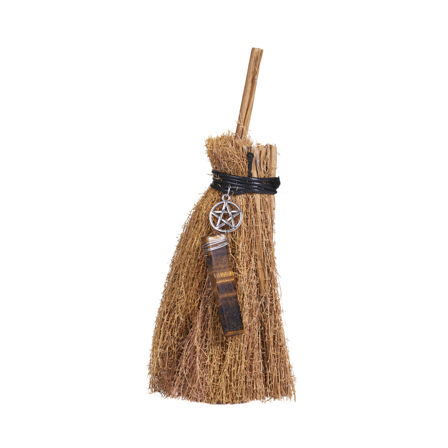 Piccola ma potente, la scopa scaccia guai Wicca è un antico simbolo di purificazione, oggi reinterpretato in chiave witchcraft contemporanea.Usata da secoli per ripulire lo spazio energetico prima di un rituale o di una pratica magica, oggi è anche un elemento decorativo simbolico, perfetto per altari, porte d’ingresso o spazi sacri. Realizzata in legno naturale e fibre vegetali, è arricchita da un amuleto pentagramma e da una pietra semi preziosa che ne amplificano l’intento: protezione, allontanamento delle negatività, radicamento e ordine energetico. ✦ Come si usa Appesa all’ingresso di casa, allontana le energie indesiderate In ambito rituale, viene passata sopra lo spazio o attorno al corpo per "spazzare via" blocchi energetici Può essere caricata con erbe, cristalli o simboli personali Utilizzata nei riti di luna nuova o di liberazione, come strumento di rinnovamento interiore Per il punto vendita: Oggetto vendibile sia come accessorio decorativo che come strumento rituale Ottimo per corner “witchcraft moderna”, “protezione”, “rituali della casa” Abbinabile a incensi, teli, tazze magiche, candele, calderoni e taccuini delle streghe