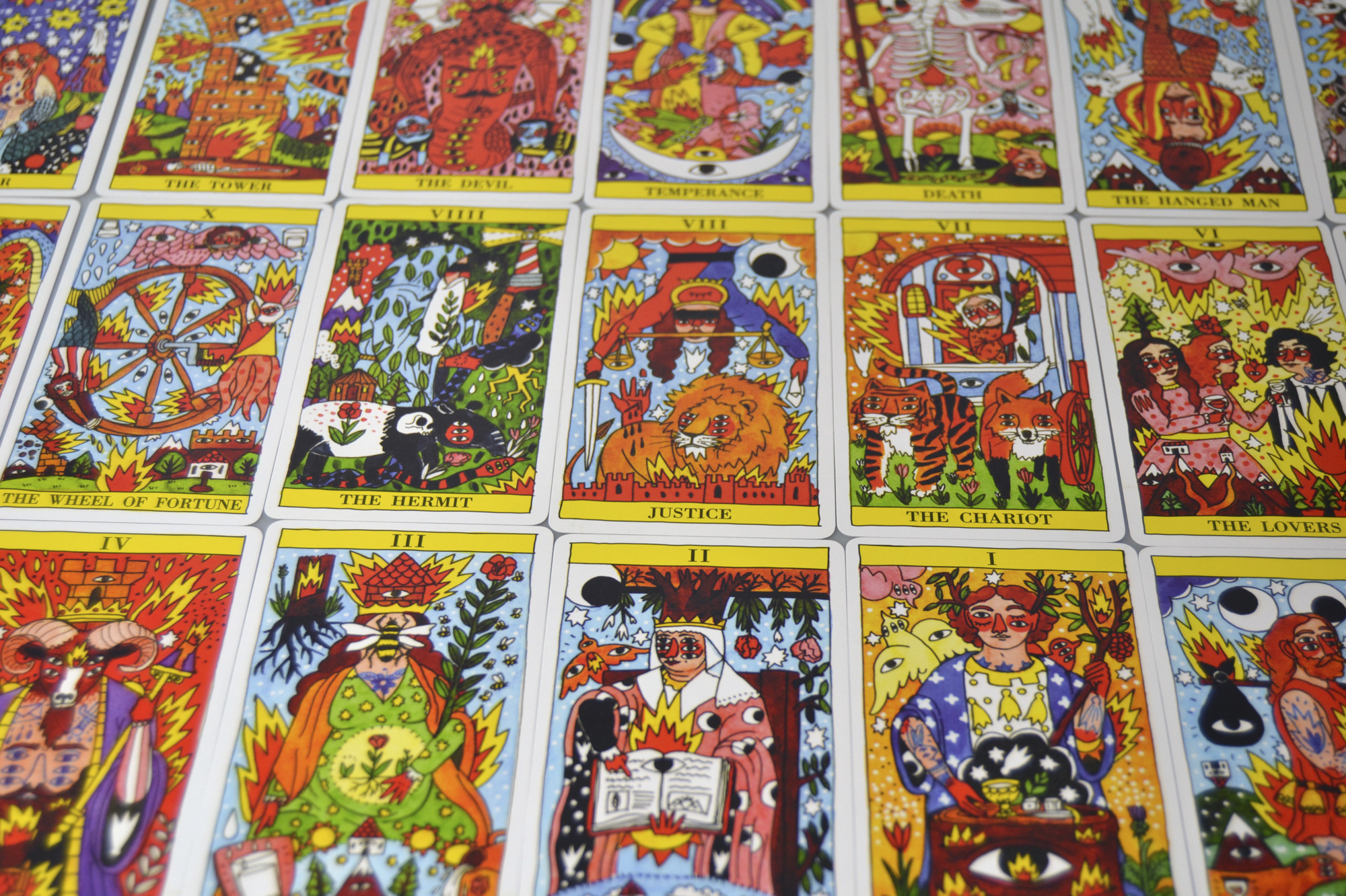 Un mazzo esplosivo e surreale, pieno di colori, occhi e fiamme, con tratti naïf e visione artistica fuori dagli schemi. Il Tarot del Fuego trasmette energia cruda, creatività e un’irriverente forza espressiva. Ideale per letture potenti, intuitive e fuori dal comune. Per il punto vendita: Design d’impatto, vendibilità alta anche in ambienti artistici Ottimo per chi cerca un mazzo “fuori dagli schemi”